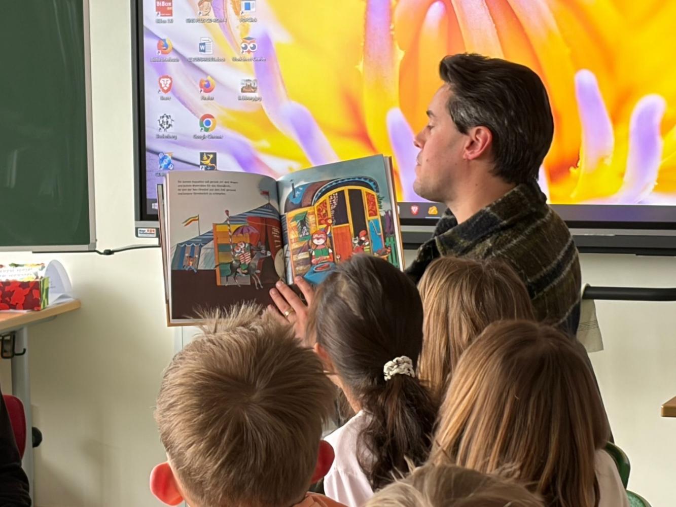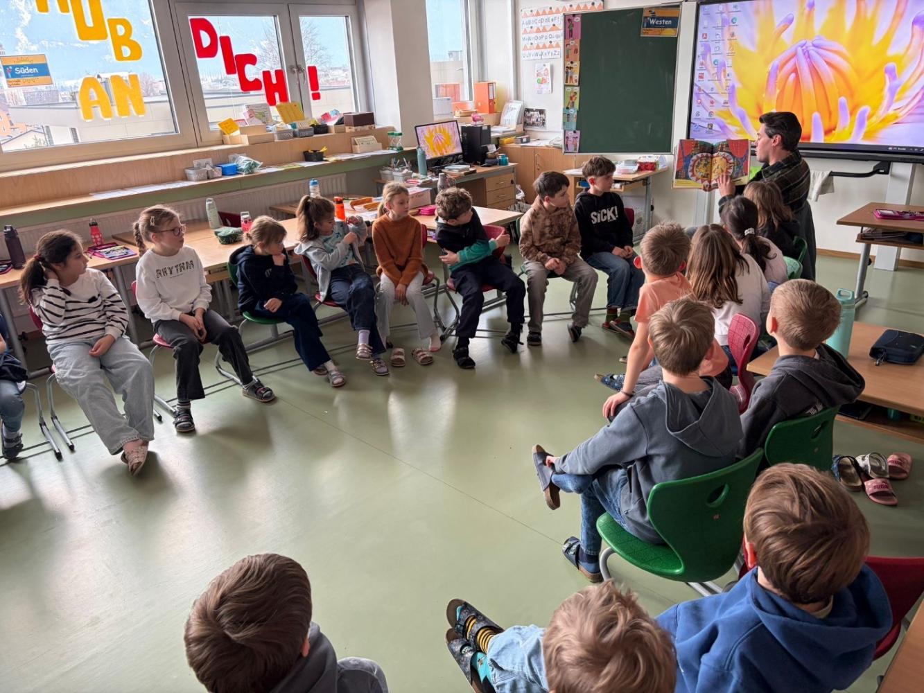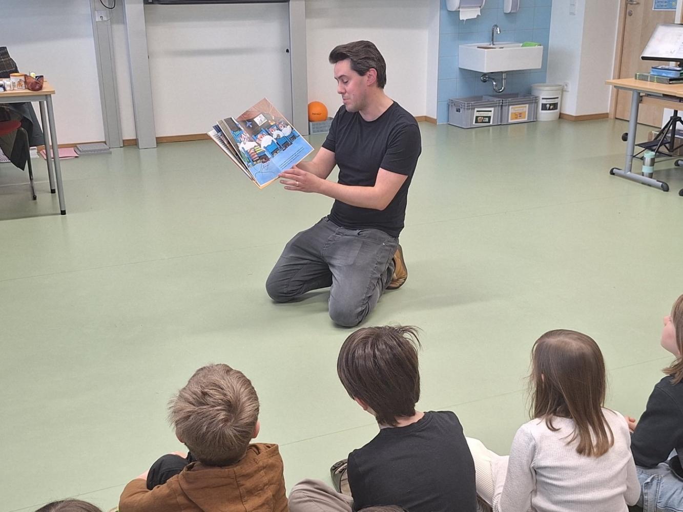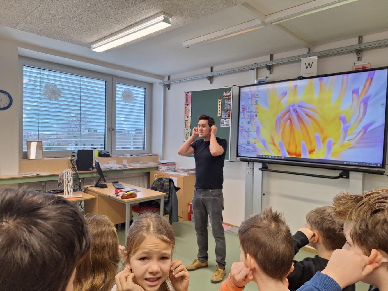 Auf Einladung von Frau Gander kehrte er an seine alte Volksschule zurück, um aus seinem Leben zu erzählen und den Kindern einen ehrlichen, spannenden Einblick in die Welt der Schauspielerei zu geben.