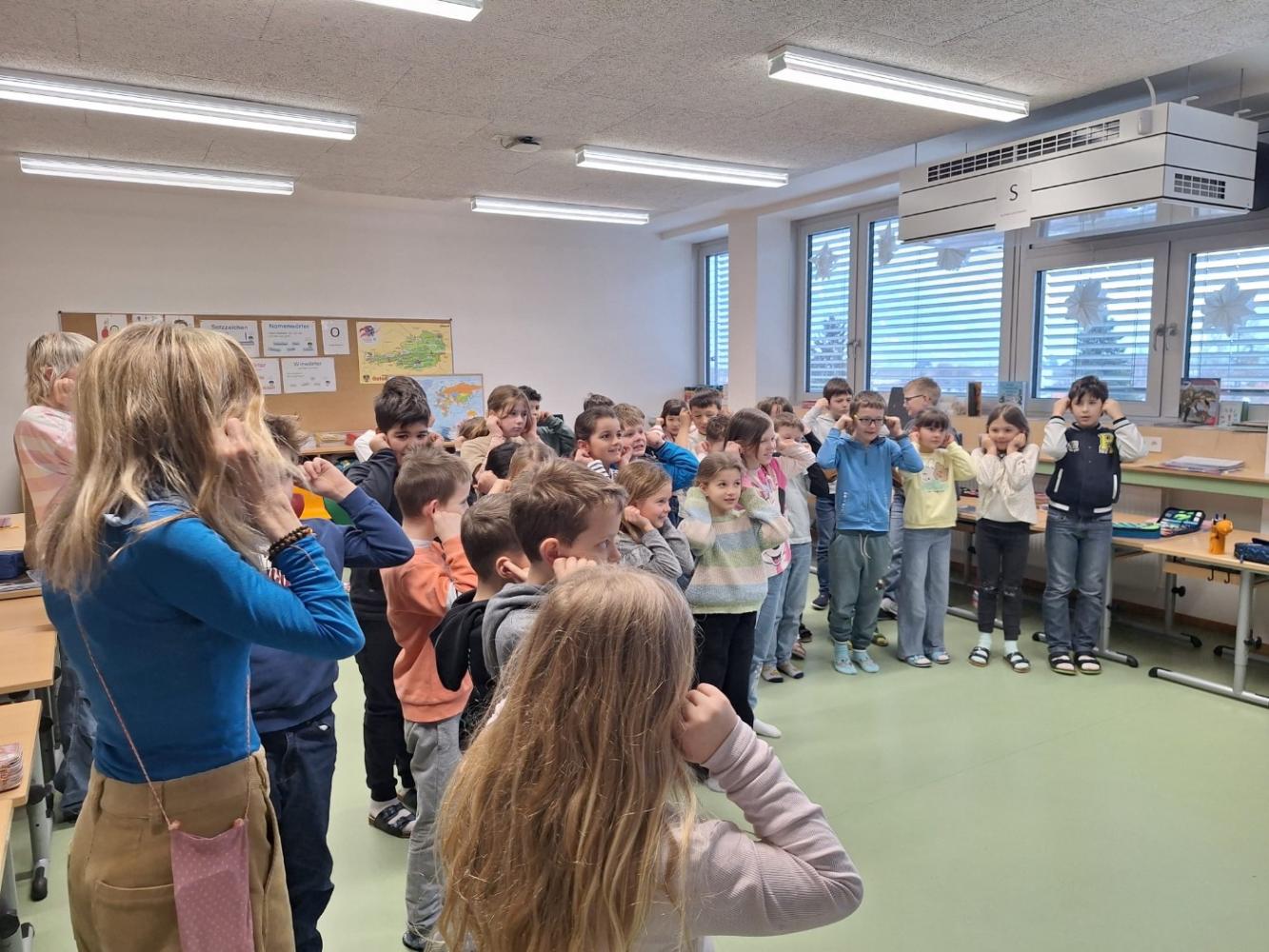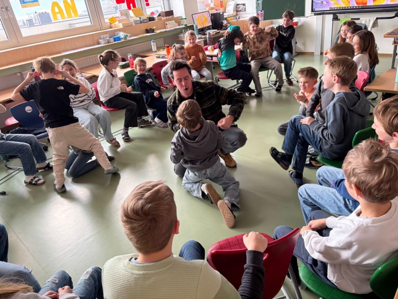 Anschließend wurde es praktisch: In kleinen Übungen durften die Schülerinnen und Schüler selbst ausprobieren, was Schauspiel ausmacht. Richtiges Atmen, Singen, Bewegen, sowie passendes Gestikulieren standen im Mittelpunkt. Schnell wurde klar, wie wichtig Körpersprache und Ausdruck sind, um Gefühle und Rollen glaubwürdig darzustellen – und wie viel Spaß das machen kann.