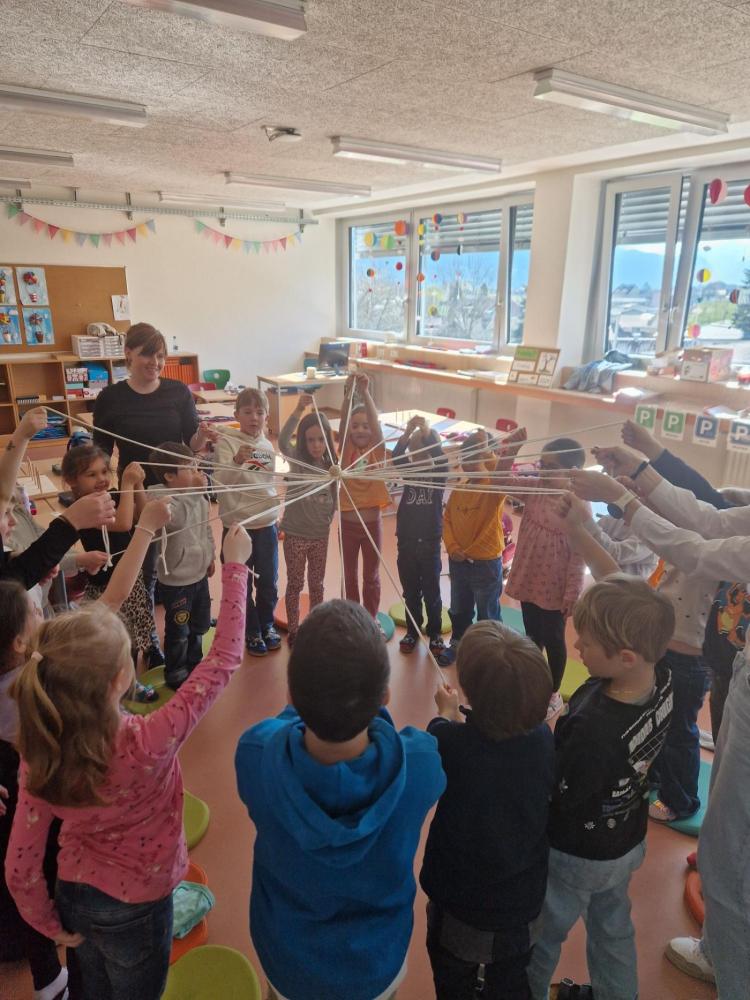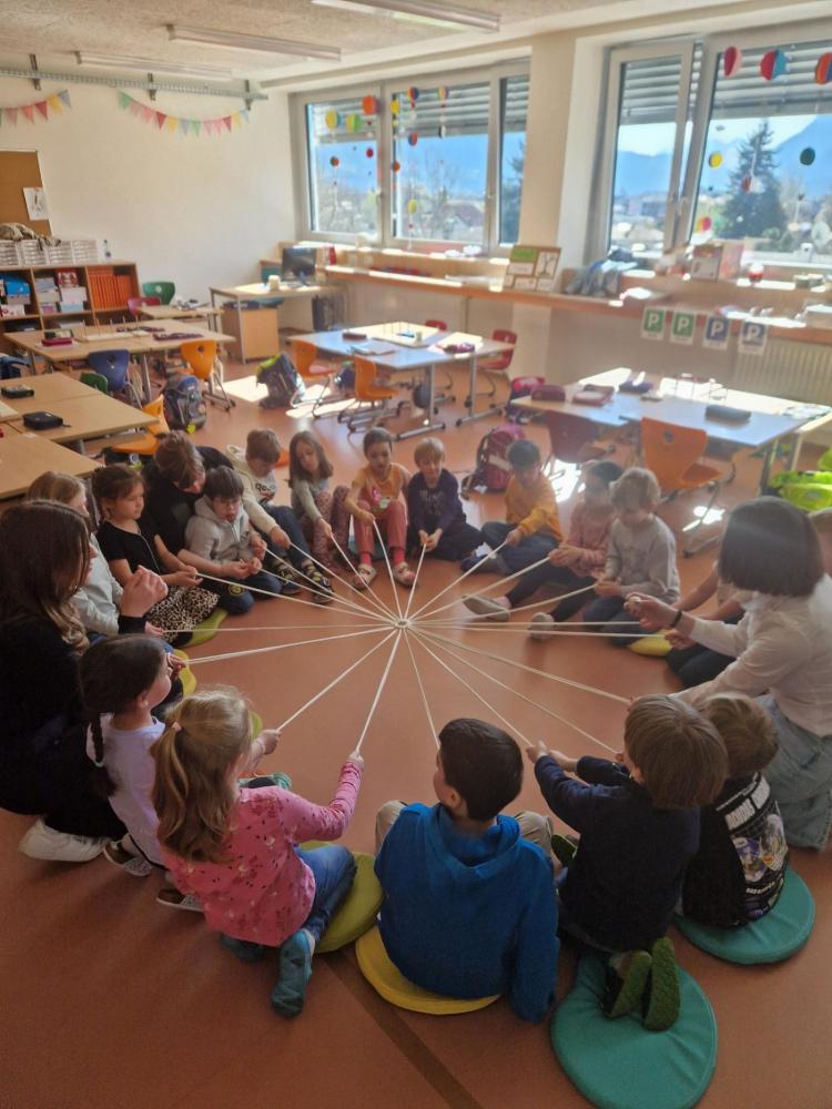 Heute wurde in der Volksschule fleißig geknüpft! Beim Makramee-Workshop durften die Kinder einen wunderschönen Schlüsselanhänger gestalten.