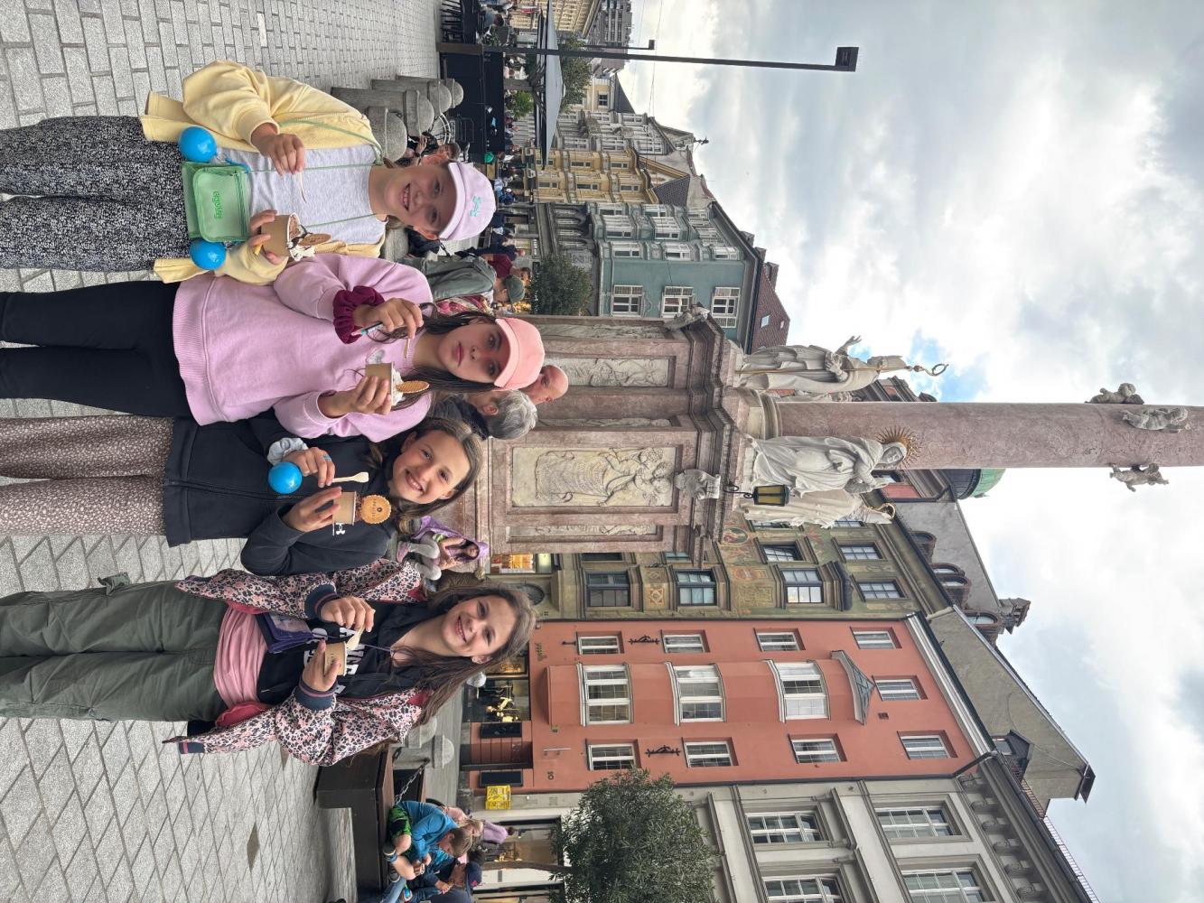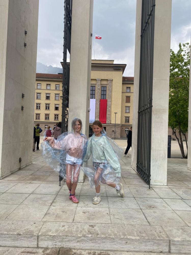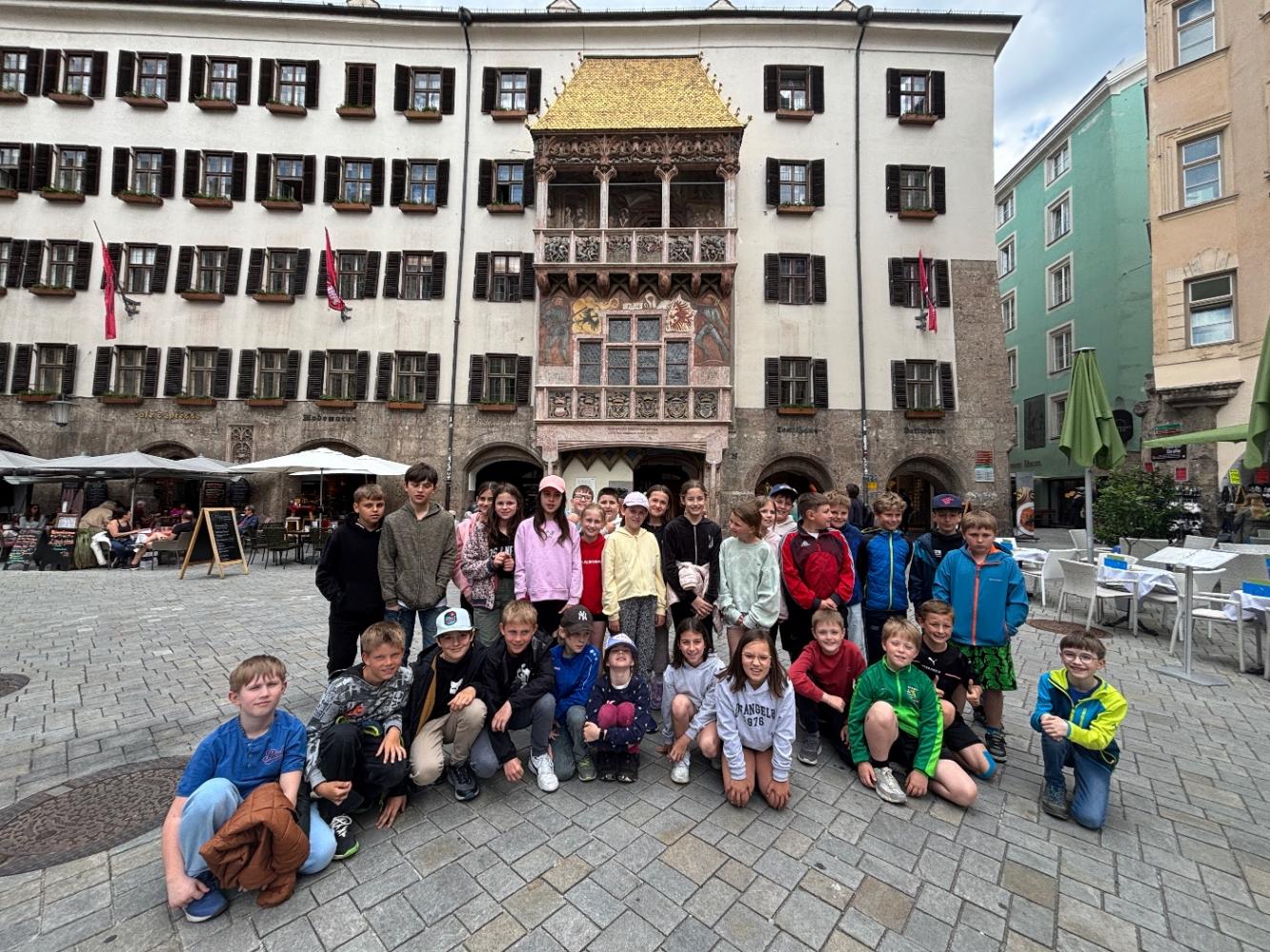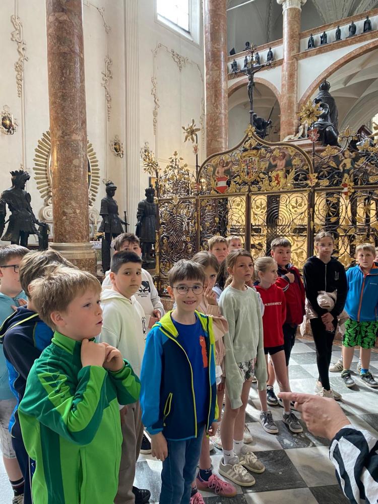 Nach der Besichtigung der Hofkirche und der Hofburg sind wir zum Goldenen Dachl spaziert. Dort haben wir Kaiser Maximilian auf zwei von vier Bildern entdeckt. Vor dem Mittagessen sind wir noch zum Dom gegangen. Das Essen im Stiftskeller hat uns besonders gut geschmeckt! Wir konnten zwischen vier verschiedenen Gerichten wählen (Kinder-Wiener mit Pommes, Chicken Nuggets mit Pommes, Bratwurst mit Pommes und Fischstäbchen mit Kartoffelsalat).