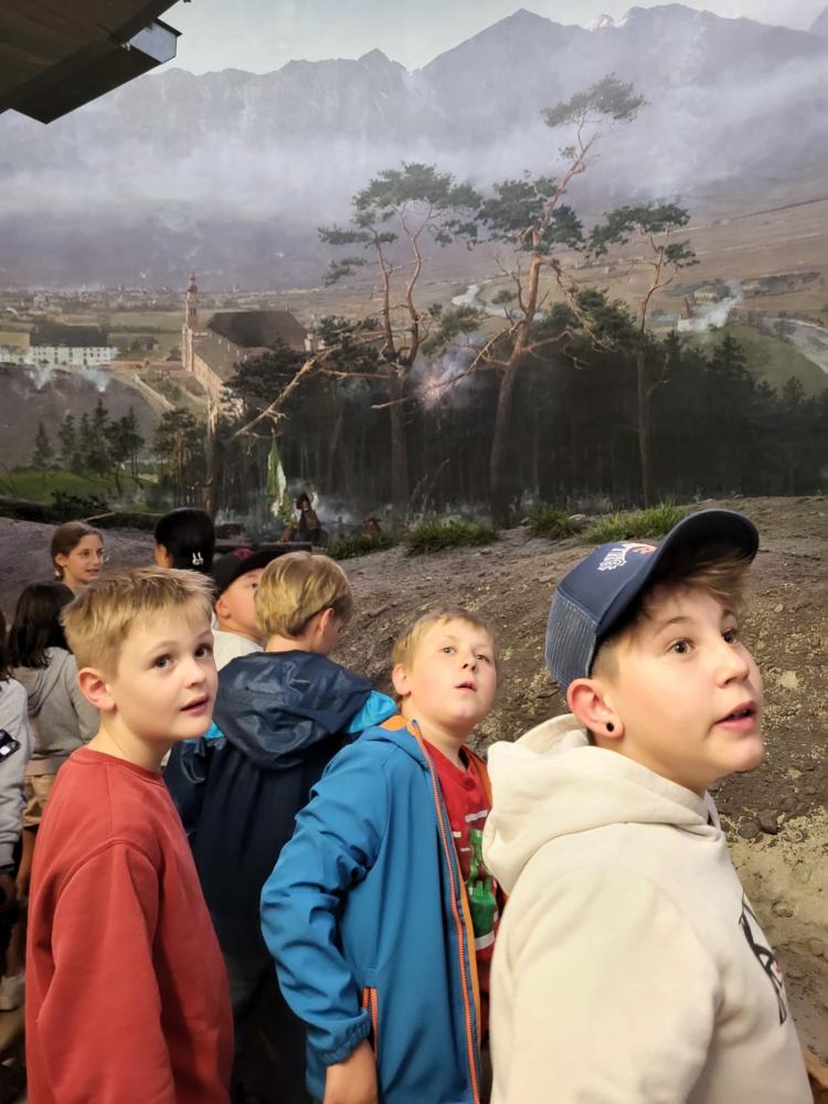 Nach dem Essen sind wir zur Annasäule spaziert. Dort hatten wir Zeit zur freien Verfügung. Im Anschluss daran sind wir zur Triumphpforte spaziert. Nach der Altstadt-Tour sind wir schnell zum Bus gelaufen, weil es angefangen hat zu regnen. Als wir beim Bus angekommen sind, fuhren wir zum Tirol-Panorama. Dort haben wir ein 1000 Quadratmeter großes Bild gesehen und durften sogar in die "Geheimkammer" gehen. Das war das beste Erlebnis! Zum Schluss sind wir noch zur Bergisel-Sprungschanze gewandert. Dort sind wir mit dem Aufzug ganz nach oben gefahren und wir hatten den besten Ausblick der Welt!